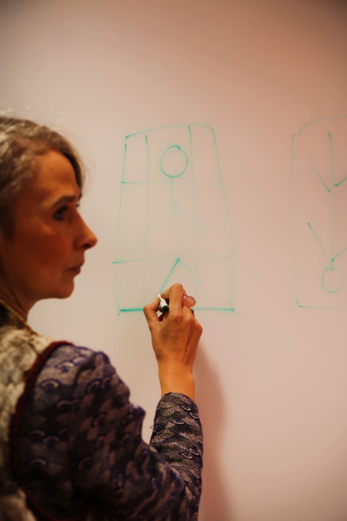 Per quanto riguarda l’offline, la presenza è più efficace. Vengo con la lavagna, faccio schemi e disegni. Oltre al valore della relazione, c’è una componente visiva importante. Online questa parte si perde. In presenza, mentre il cliente parla, io scrivo, disegno, visualizziamo insieme e a fine sessione faccio una foto e la mando come strumento di lavoro. Penso che la creatività emerga meglio in presenza, con vibrazioni diverse rispetto allo stare davanti allo schermo.